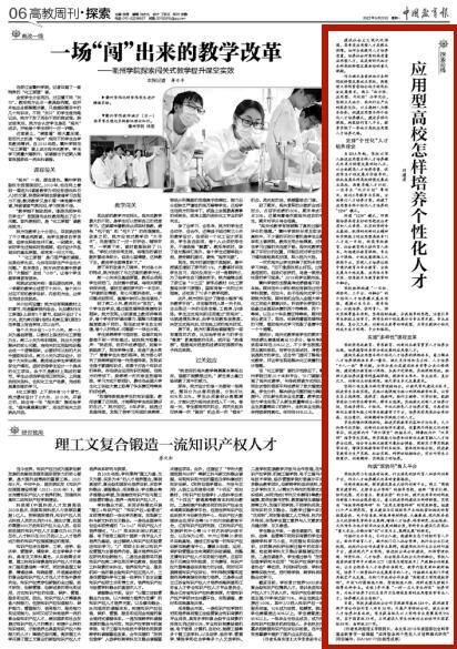 5月23日,中国教育报第六版(高教周刊)刊发了校长刘建清撰写的理论文章《应用型高校怎样培养个性化人才》。