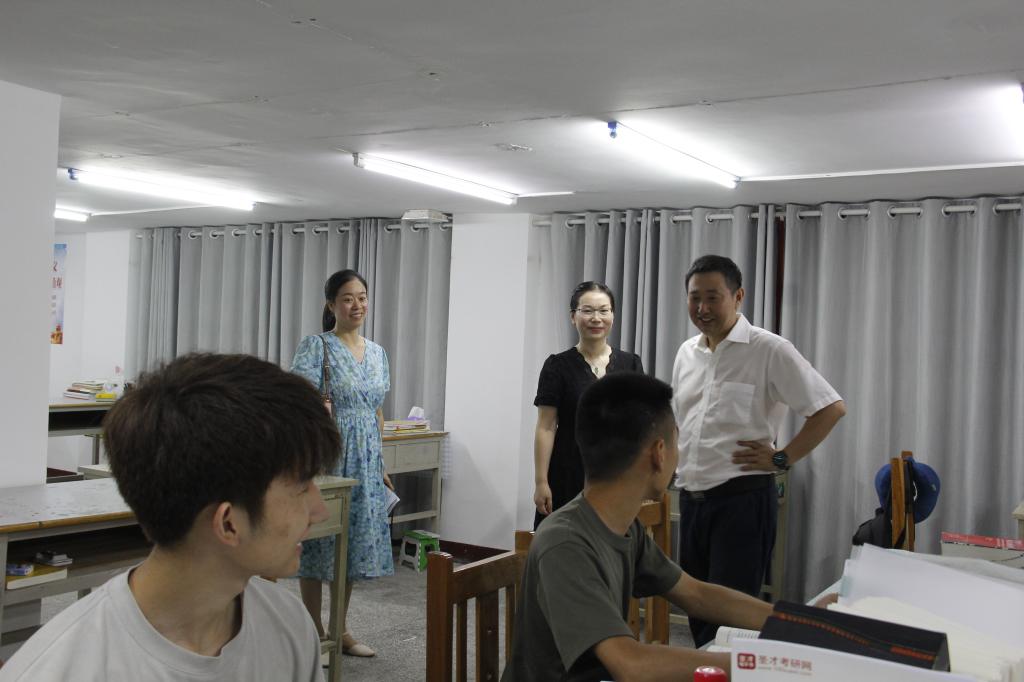 王学民、刘建清对同学们放弃暑假休息时间、积极备考备赛的精神表示肯定,并提出四点希望。一是要坚定信心。信心比黄金更重要,面对困难挑战要鼓足勇气、迎难而上、永不言弃,认真复习备考,抓紧培训备赛,力争取得好成绩;二是要注意学习方法。要合理制定学习计划,勤于思考问题,善于归纳总结,重方法、讲效率,努力达到事半功倍的学习培训效果;三是要劳逸结合。备考备赛既是智力的比拼,也是对身体素质的考验。要张弛有度、规律作息,锻炼身体、增强体质,做到健康生活、快乐学习。四是要做好服务保障。相关职能部门要切实做好饮食、用水用电、安全保卫等工作,为留校学生提供安全、舒适的学习生活环境。