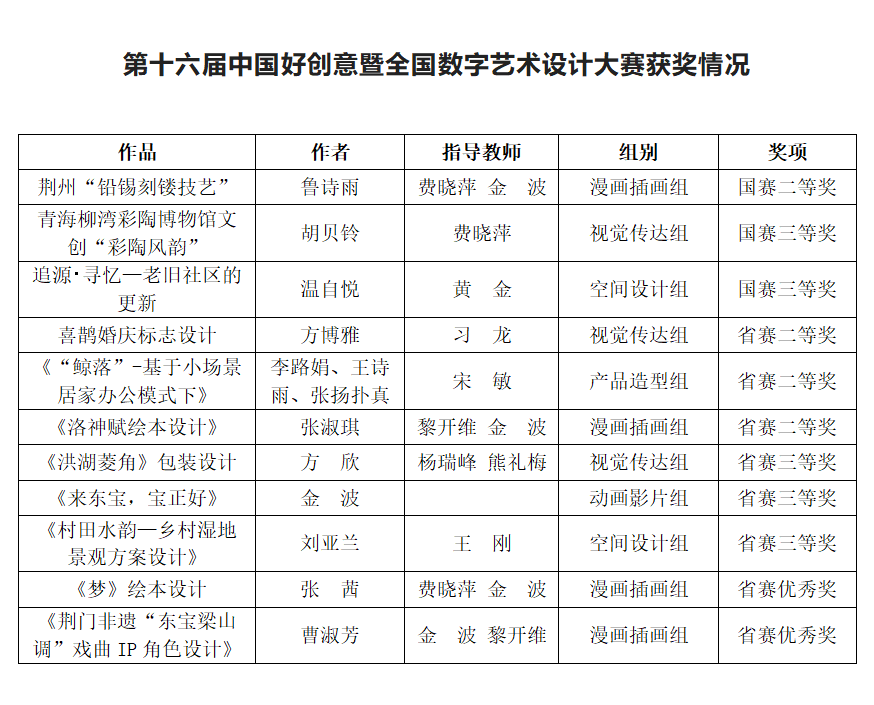 近年来,开云官网坚持以学生为中心,积极探索艺术教育教学改革,营造“以赛促教、以赛促学”的竞赛文化氛围,鼓励学生参加各类创新设计竞赛,通过竞赛培养学生专业素养、团队意识和创新能力,实现协同育人、赛教融合。