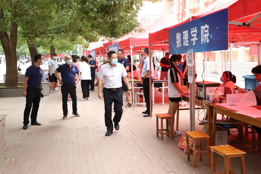 新生报到期间,党委书记王学民、校长刘建清分别带队深入迎新现场和新生宿舍,检查迎新工作、看望新生及家长。