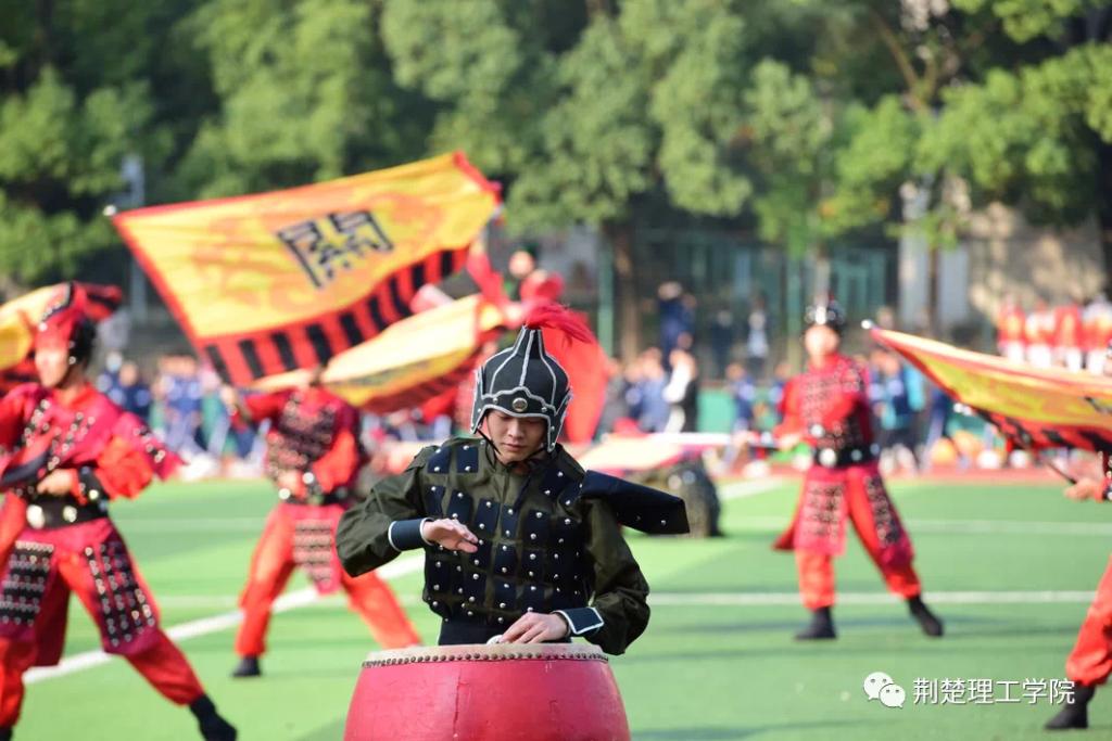 开幕式表演精彩纷呈。艺术学院将舞台“搬”到了运动场上,民族舞蹈舞姿刚劲跌宕,活泼潇洒,他们热情万分,默契十足,用青春展示了民族舞蹈独特的魅力;集体舞《关公屯兵》,旌旗猎猎,战鼓铮铮,关公雄风,惊艳全场,彰显了赤子的爱校之心、充满战斗的勇气、锐意勃发的势气。紧接着,来自8个学院1600名同学组成的方阵带来精彩的广播体操表演,动作整齐划一,尽显青春活力。