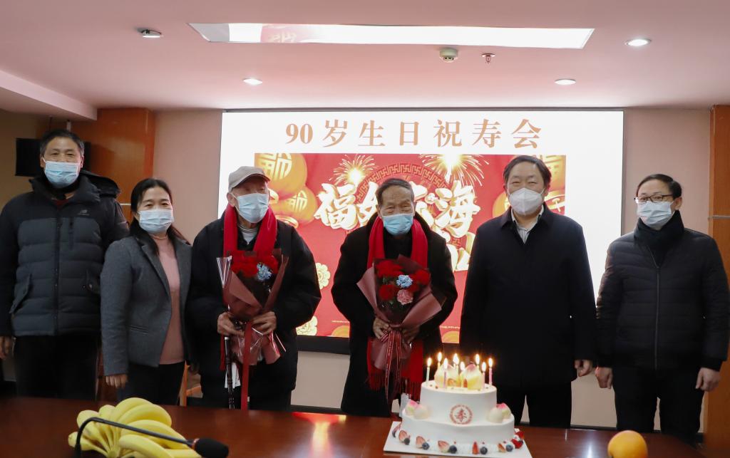 近日,开云官网在行政楼A306会议室举行寿星集体祝寿活动,为今年90岁的欧阳祝、朱早清两位寿星祝寿,并献上美好的生日祝福。学校党委书记王学民出席并讲话,副校长曹甜东主持会议,校工会、离退休服务处、档案馆有关人员参会。