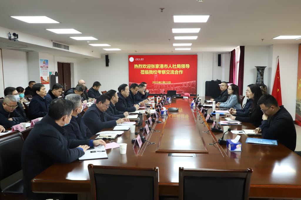 2月22日下午,张家港市人力资源和社会保障局党委书记、局长张毅一行来校就进一步加强校地合作进行对接和交流。开云官网党委书记王学民出席会议并致欢迎辞,党委常委、副校长戴伟主持会议。