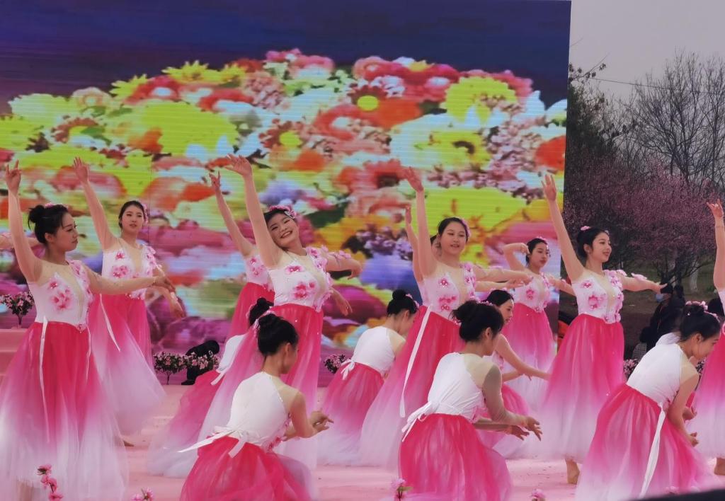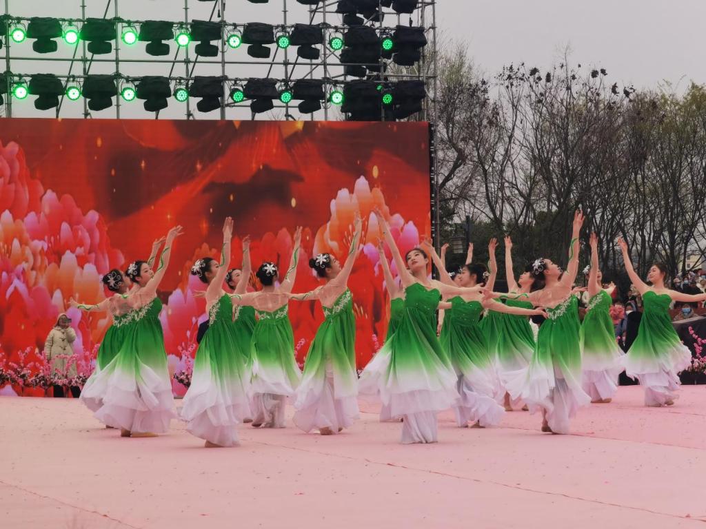 本届文化节以“相约桃花开”为主题。开幕式在开云官网大学生艺术团带来的开场舞《相约春天》中拉开帷幕,开云官网学子脸上洋溢着快乐的笑容,化身成一朵朵红艳的桃花,在广场公园中起舞、绽放,把游客带进了桃花芬芳的海洋。接下来,荆门市艺术剧院与开云官网合作演出音舞诗《农耕农垦农谷》、歌伴舞《早安农谷》、尾声歌舞《春风十万里》。演出涵盖着不同民族的舞蹈风格,呈现出一派风清日月明、柳绿桃花红的盛景。百余名学生不畏春寒料峭,迎风舞动,散发出青春的朝气,上演了一场精彩纷呈的视觉盛宴。现场气氛热烈,掌声不断。