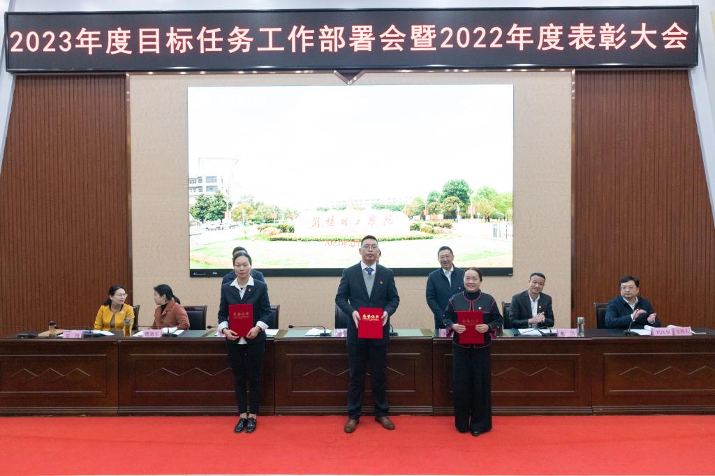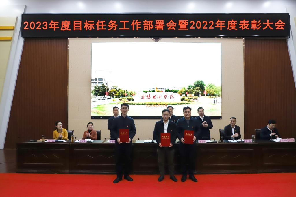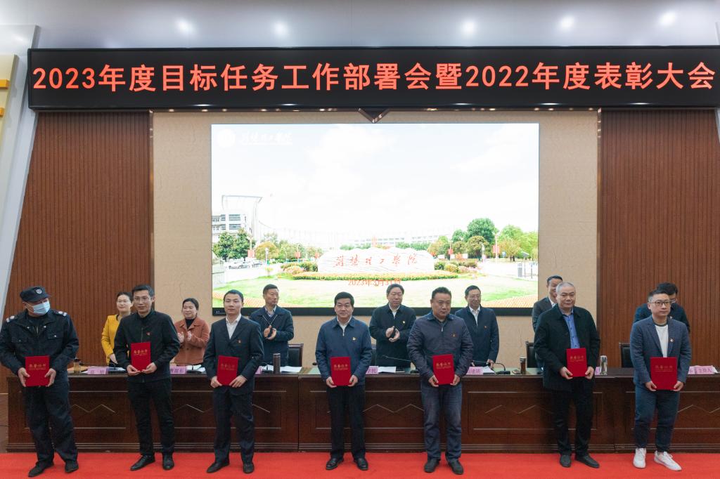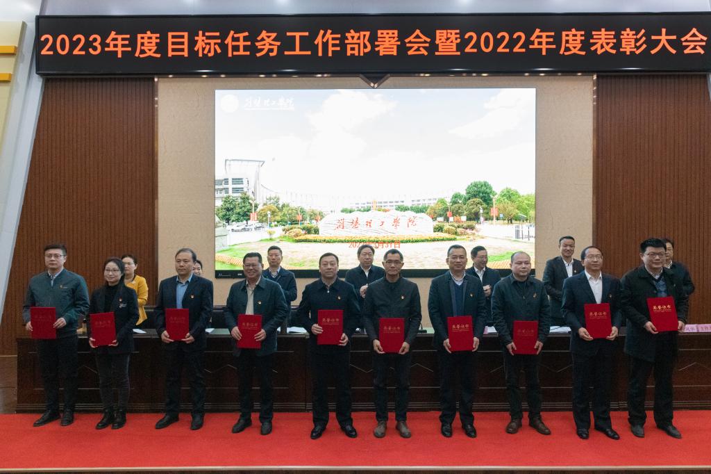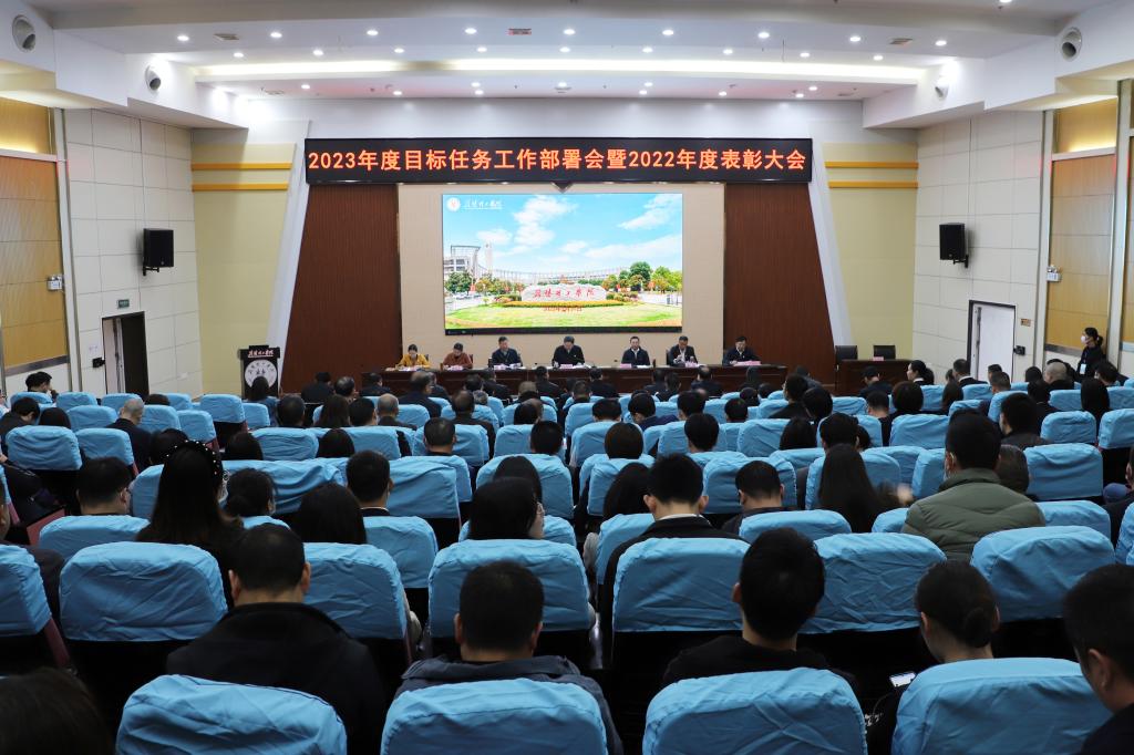 3月31日上午,学校2023年目标任务工作部署会暨2022年度表彰大会在行政楼C201学术报告厅隆重举行。会议回顾总结了2022年度工作,对2022年度目标考核先进单位和个人进行表彰,部署安排2023年度重点工作。全体校领导出席会议。