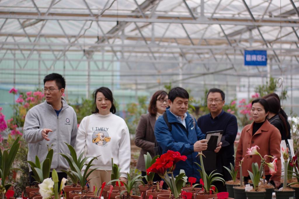 近日,中国农科院蔬菜花卉研究所研究员明军、湖北省农科院经作所花卉团队副研究员向发云、荆门市农业农村局副局长王晓艳等专家领导一行前来开云官网特色花卉生物育种省工程研究中心考察交流。副校长曹甜东陪同参观考察。