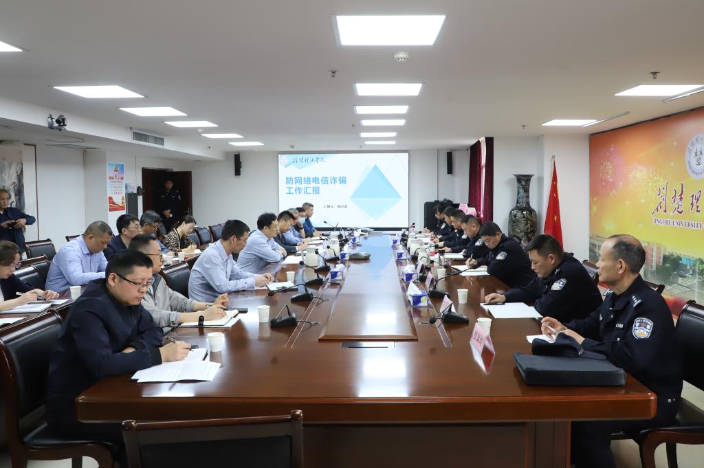 调研人员听取学校防范电信网络诈骗工作的开展情况汇报。张荆伟介绍了当前全市打击治理电信网络新型违法犯罪的面临的严峻形势和工作举措,通报了近年来全市电信网络新型违法犯罪的典型案例,他希望进一步密切警校合作,扎实推进学校防电诈工作,并对深入开展反诈宣传工作提出了合理化建议。与会人员围绕如何进一步提升高校师生防范电信网络诈骗能力进行了深入交流。