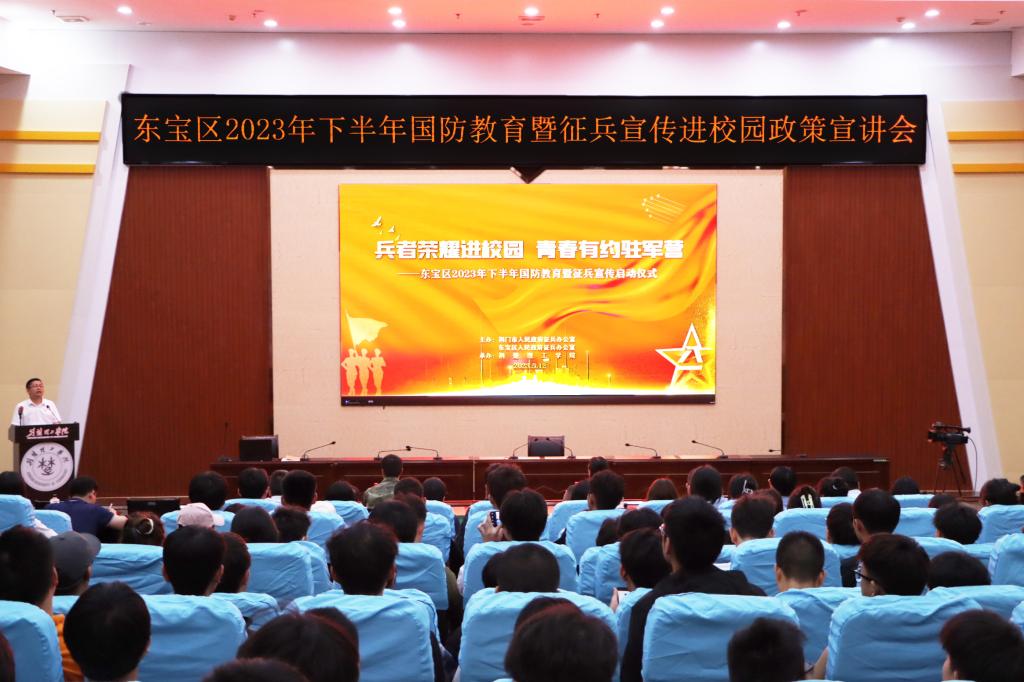 为深化全民国防教育,强化依法服兵役意识,5月12日晚,东宝区2023年下半年国防教育暨征兵宣传启动仪式在开云官网C201学术报告厅举行。校党委常委、宣传部部长郑艳,东宝区武装部政委王建峰出席启动仪式。