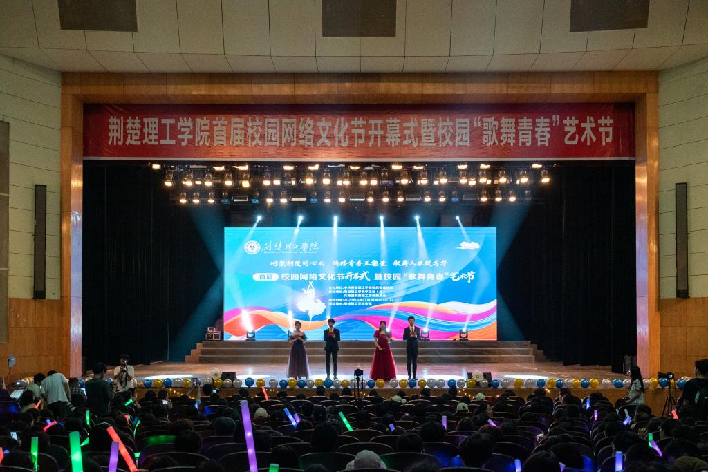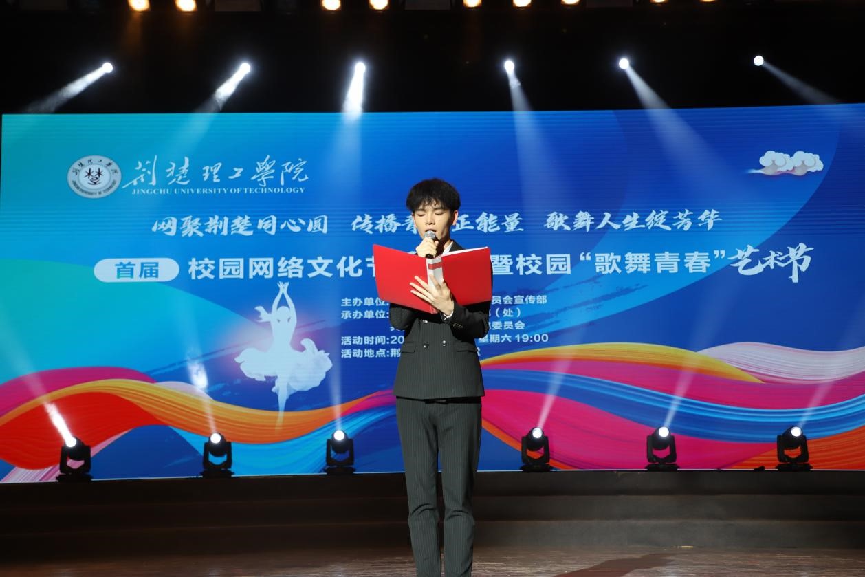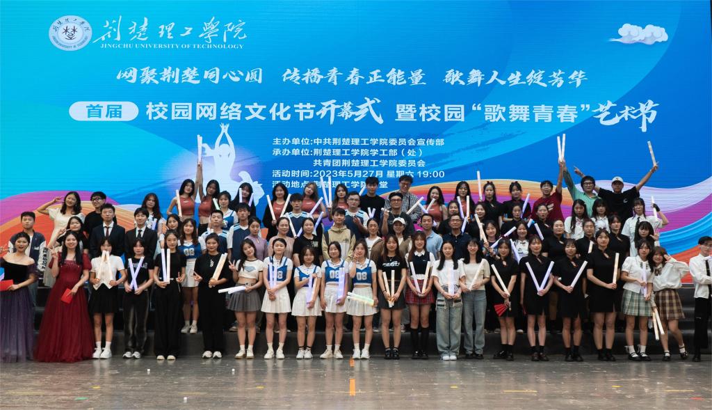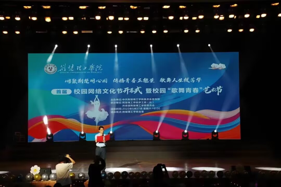 网聚荆楚同心圆,传播青春正能量,歌舞人生绽芳华。5月27号晚,由开云官网宣传部主办,学工部、校团委承办的首届校园网络文化节开幕式暨校园“歌舞青春”艺术节在荆楚理工会堂举行。校团委书记王睿致辞并宣布开幕,师生代表共300余人参与活动。
