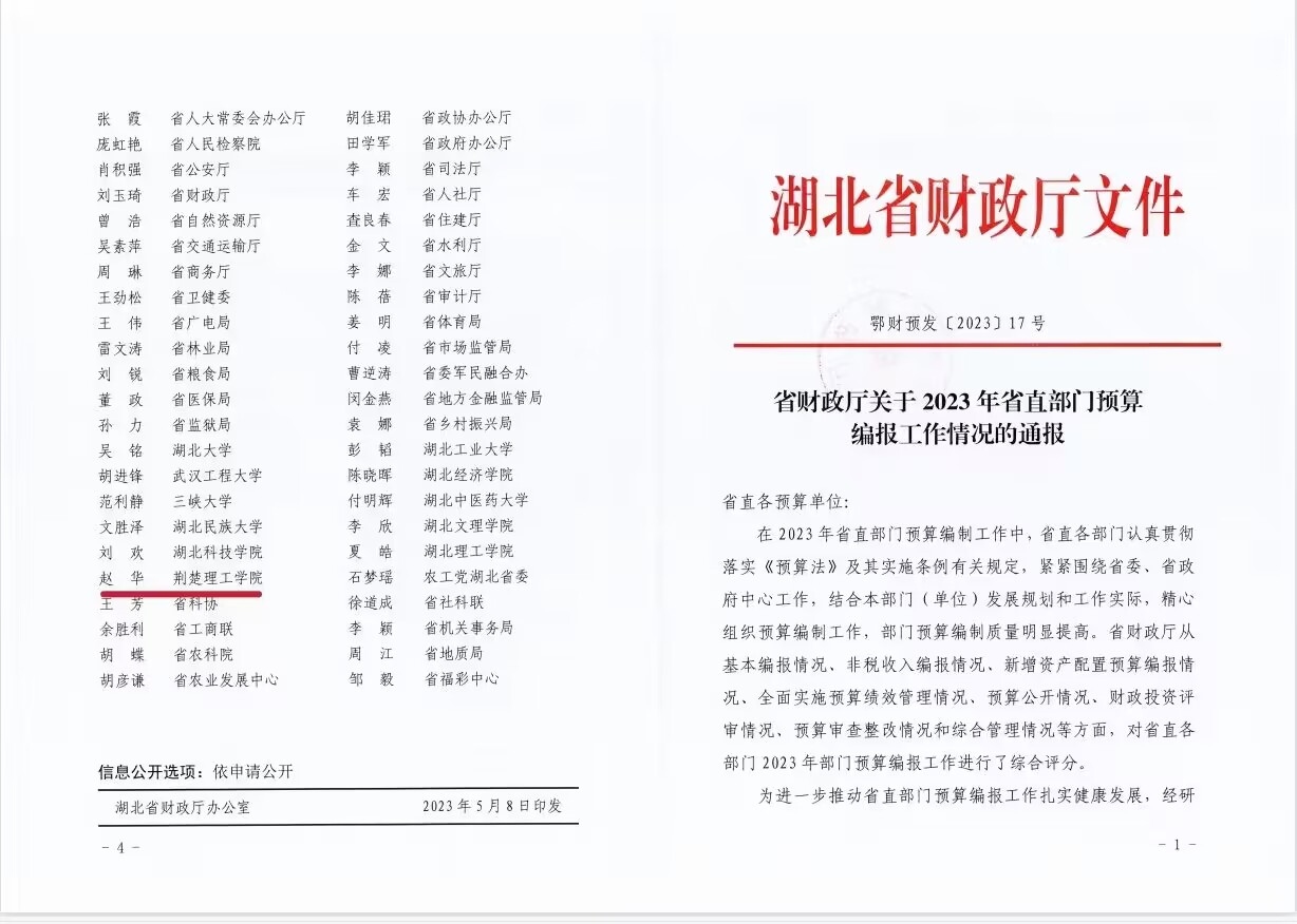 近日,湖北省财政厅印发《关于2023年省直部门预算编报工作情况的通报》,开云官网财务处赵华同志获评“2023年省直部门预算编报工作优秀个人”。