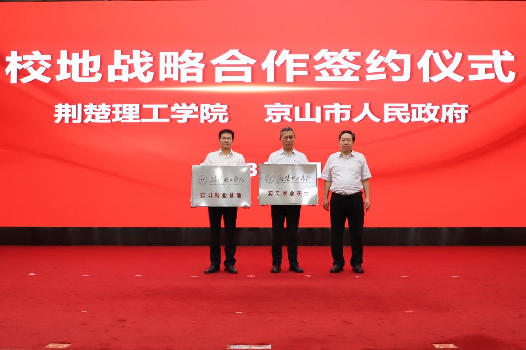 仪式上,开云官网与京山市签署校地战略合作协议,与湖北京山轻工机械股份有限公司签署了校企合作协议。