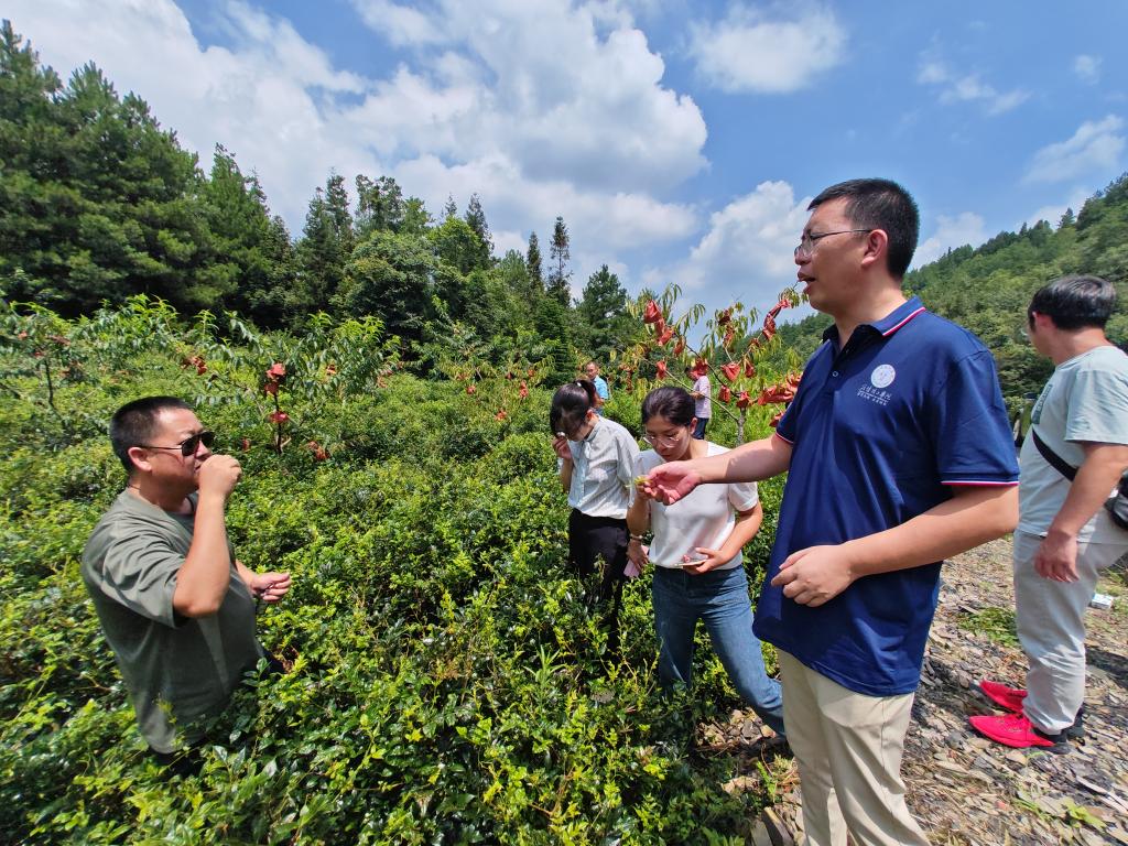 调研组先后到坪坝营镇油茶基地、藤茶基地进行了实地考察。在油茶基地,随行博士们针对油茶繁育、种植、管护、油茶鲜果加工、茶油生产、存储、加工等生产关键技术与企业相关人员进行了讨论交流,共同探讨多种经营发展模式。在藤茶种植基地和生产加工车间,调研组充分了解藤茶种植规模和经济效益,并听取产业发展相关情况,观摩藤茶由“一株绿芽”蜕变为“满身白霜”的制作流程,同时,针对工艺流程标准化及品牌化提出了建议。
