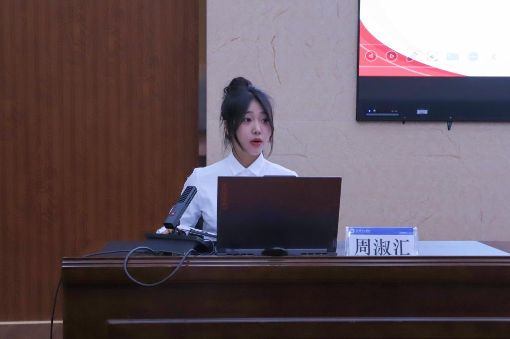 周淑汇以《无奋斗,不青春》为题,分享了她在社会服务与自我成长中所经历的点点滴滴,从初次献血时的不安与紧张,到得知血型匹配成功时内心的喜悦与激动,一次次奔赴志愿活动现场的实践中倾注了满腔热情,逐渐蜕变为那一抹亮丽而温暖的志愿红,成为社会中不可或缺的一分子。作为一名学生党员,周淑汇用实际行动向我们诠释了为人民服务的党员本色,一项项荣誉的背后,是她不懈的努力和坚持,也是她一次次超越自我、追求卓越的见证。她呼吁同学们要勇敢尝试、不畏挑战,不断拓宽自己的视野和认知,共同书写属于我们这一代人的精彩篇章。