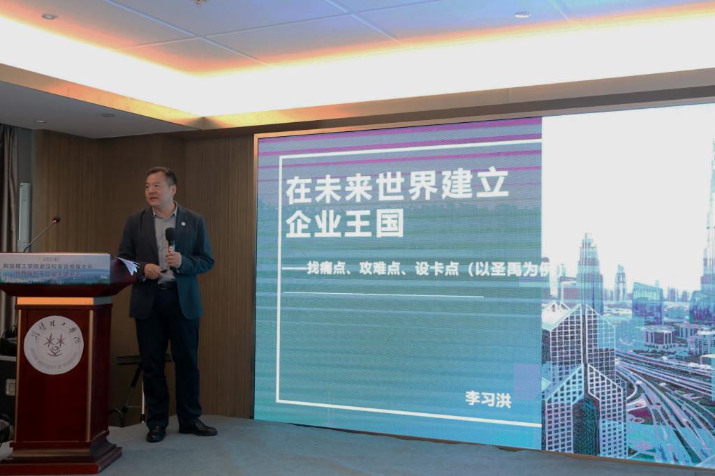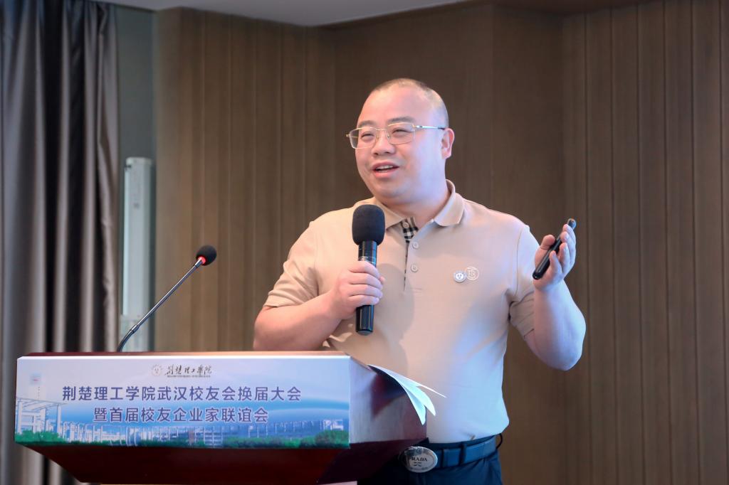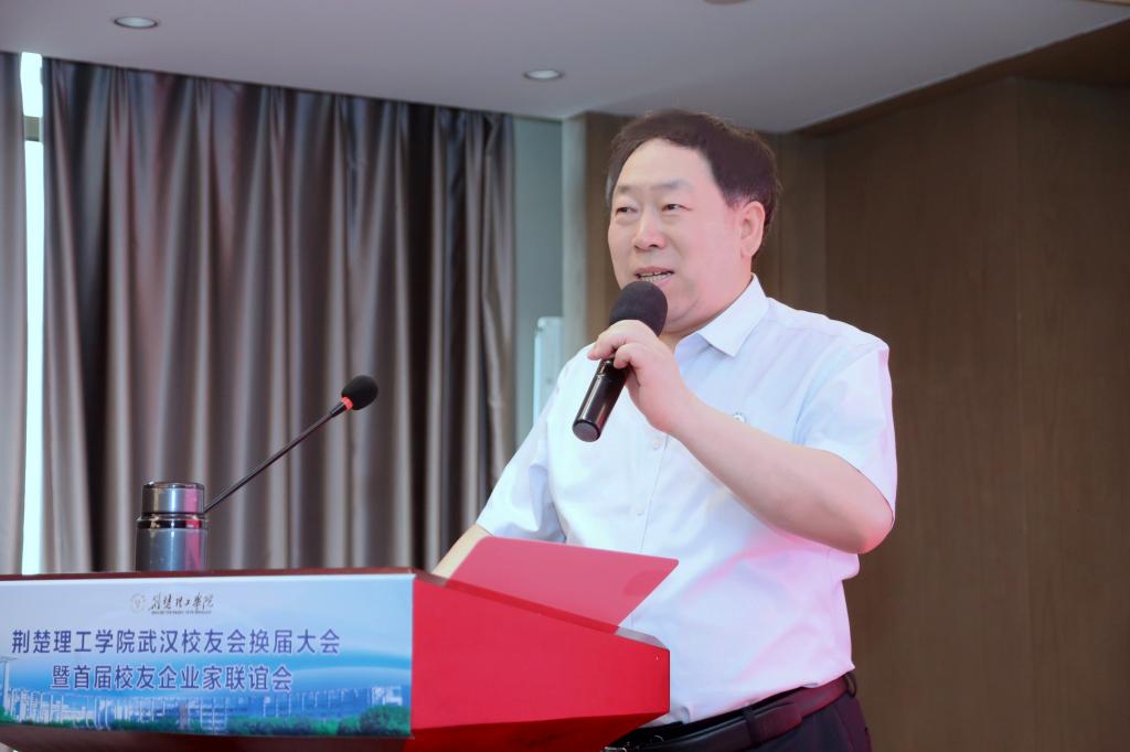 王学民向大会致辞。他表示,校友是学校历史发展的见证人,是学校办学质量的最好证明,更是母校的重要财富;校友会是我们共同的家园,是情感的纽带,也是校友事业发展的平台。多年来,校友会秉承团结、互助、共进精神,着力促进校友彼此关心、相互支持、共同进步。在促进校友间的交流与合作、推动母校发展等方面取得了一定成绩。他希望新一届武汉校友会理事会要创新工作方式,定期举办形式多样的校友活动,将武汉校友会打造成地方校友会标杆。要以此次校友企业家联谊会召开为契机,推动产学研协同创新,发挥各自优势,实现资源共享,构建校企高质量发展共同体。