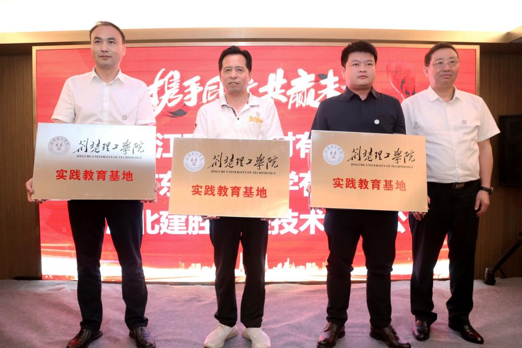 会上举行了教育实践基地、毕业生就业基地授牌和校企合作签约仪式。刘建清、刘风华为校友企业授牌。科技处负责人代表学校分别与校友企业北京智汇云舟科技有限公司、湖北艾克电缆有限公司、荆门市绿食苑农业科技有限公司签订《校企合作框架协议》。