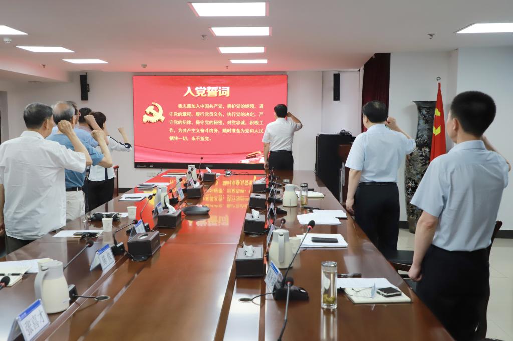 座谈会在庄严的国歌声中拉开帷幕,全体党员面向党旗,重温入党誓词。