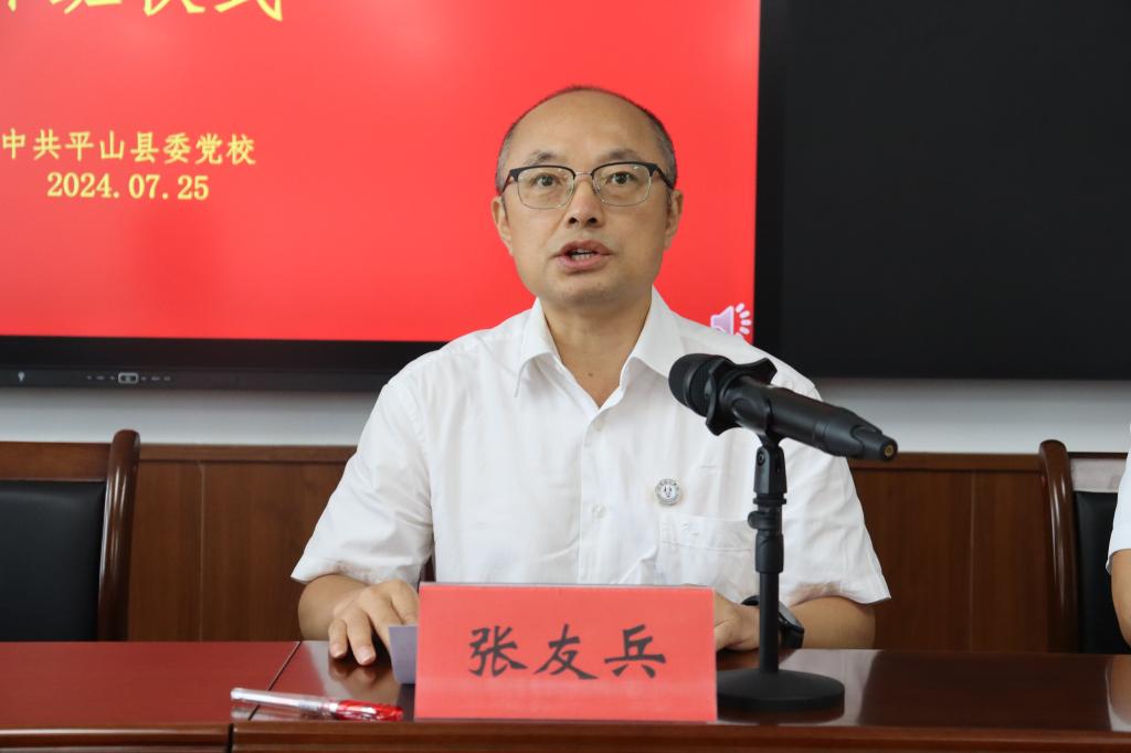 张友兵在开班仪式上作动员讲话。他希望大家通过学习,将谦虚谨慎、艰苦奋斗的西柏坡精神转化为增强党性修养的动力,将敢于斗争、敢于胜利的西柏坡精神转化为提升工作水平质效的动力,将依靠群众、团结统一的西柏坡精神转化为加强作风建设的动力。在学习中把握精髓、善于思考、注重积累、融会贯通,不断加强自身建设,增强政治意识、大局意识和责任意识,提升驾驭全局的能力和应对复杂局面的能力,始终保持清醒头脑,干在实处、走在前列、勇立潮头,为学校高质量发展再立新功。
