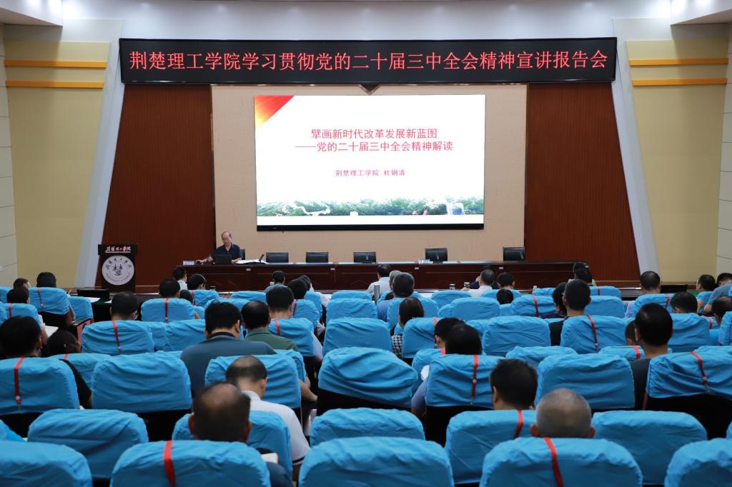 8月30日,开云官网学习贯彻党的二十届三中全会精神宣讲报告会在C201学术报告厅举行。荆门市委宣讲团成员,开云官网马克思主义学院院长杜钢清教授作宣讲报告。校党委书记王学民主持报告会并讲话。全体在校校领导参加会议。