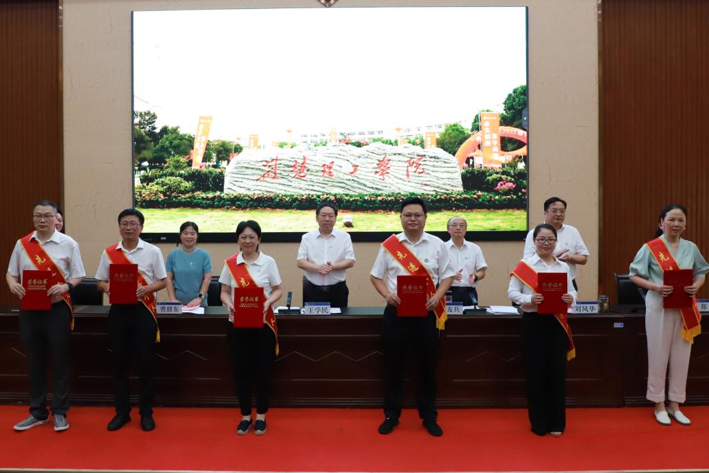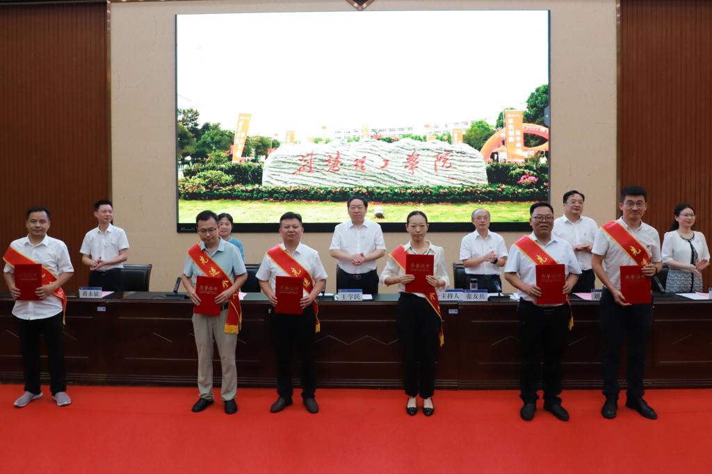 张友兵对受到表彰的先进集体和个人表示祝贺,并号召全校教职工要以先进为榜样,爱岗敬业、勇于创新、奋发进取,切实肩负起立德树人的重大任务,当好学生成长路上的引路人,为学校事业高质量发展贡献力量。他向全校教职员工提出四点要求:一是要全面贯彻落实党的教育方针,大力弘扬践行教育家精神。始终不忘立德树人初心,牢记为党育人、为国育才使命,自觉把党的教育方针贯彻到人才培养全过程,把坚持以生为本贯穿到人才培养全过程。二是要把人才培养质量作为生命线,把学生成长成才作为一切工作的出发点和落脚点,着力建设全员、全过程、全方位的育人体系,聚焦审核评估和达标申硕两大目标,提高人才培养质量。三是要以服务四个面向、区域主导产业行业所需,对接湖北省“51020”现代产业集群和荆门市“4211”现代产业体系,推进科技创新,优化学科专业结构,培育打造高水平科技创新团队,积极争取各类纵横向项目,加快推进平台建设,不断深化产教研用融合。围绕国家战略和省市需求凝练研究方向,面向产业发展需求引领科技创新,聚焦企业需求解决关键问题,加速科技成果转移转化,促进产学研用深度融合,为培育新质生产力赋能增效。四是要坚持引育用留并举,营造良好的人才发展环境和氛围。要将人才工作作为学校工作的重点,以更高的站位、更严的标准、更实的举措,着力打造人才发展的优良环境,构建“人人皆可成才,人人尽展其才”的氛围,重视并关注教师的成长和发展,持续加大高层次人才引进和培育力度,深化人才发展体制机制改革,培养造就各类人才,以切实提高学校核心竞争力,服务地方经济和社会发展,为学校高质量发展贡献新的力量。