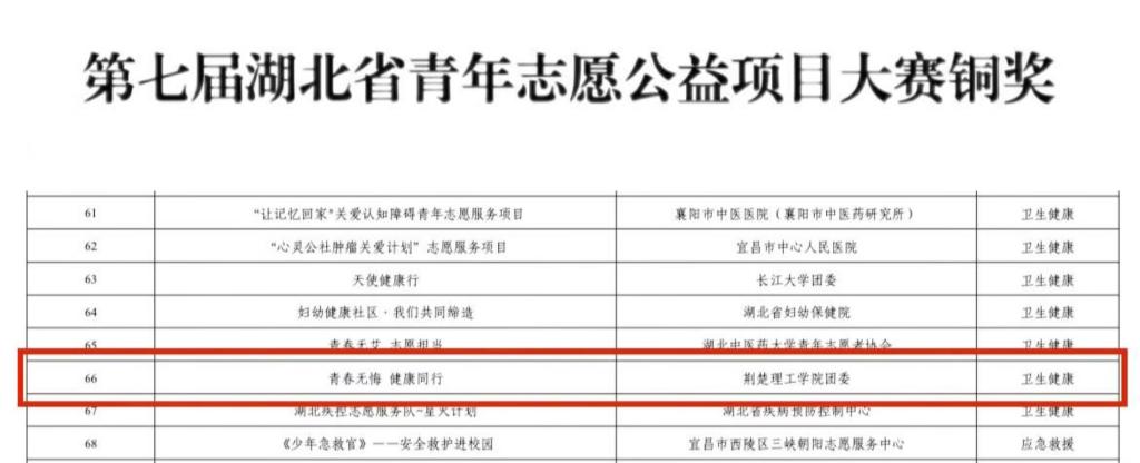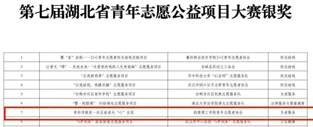 近日,由团省委、省委社会工作部、省民政厅、省水利厅、省文旅厅、省卫健委、省残联联合举办的2024年湖北省青年志愿服务项目大赛暨第七届中国青年志愿服务项目大赛湖北省选拔赛圆满结束。
