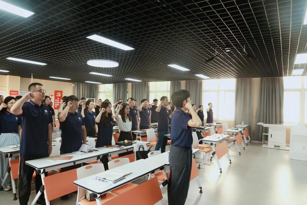 校辅导员名师工作室负责人周芸带领全体学员庄严宣誓。经济与管理学院辅导员龚才新以《辅导员工作室思政育人路径》为主题分享了暑期培训心得。
