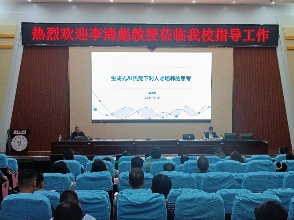 李清彪以《生成式AI技术热潮下对人才培养的思考》为题作了精彩报告,他从当前广受关注的ChatGPT人工智能技术为切入点,深入剖析了生成式AI的发展进程、特征,详尽列举了其在教育领域的应用现状,阐述了未来教育及人才培养的思考。他强调,面对人工智能技术的快速发展,教育工作者需要不断更新自己的知识体系和创新育人的方法与路径,重视培养学生的创造性批判性思维。