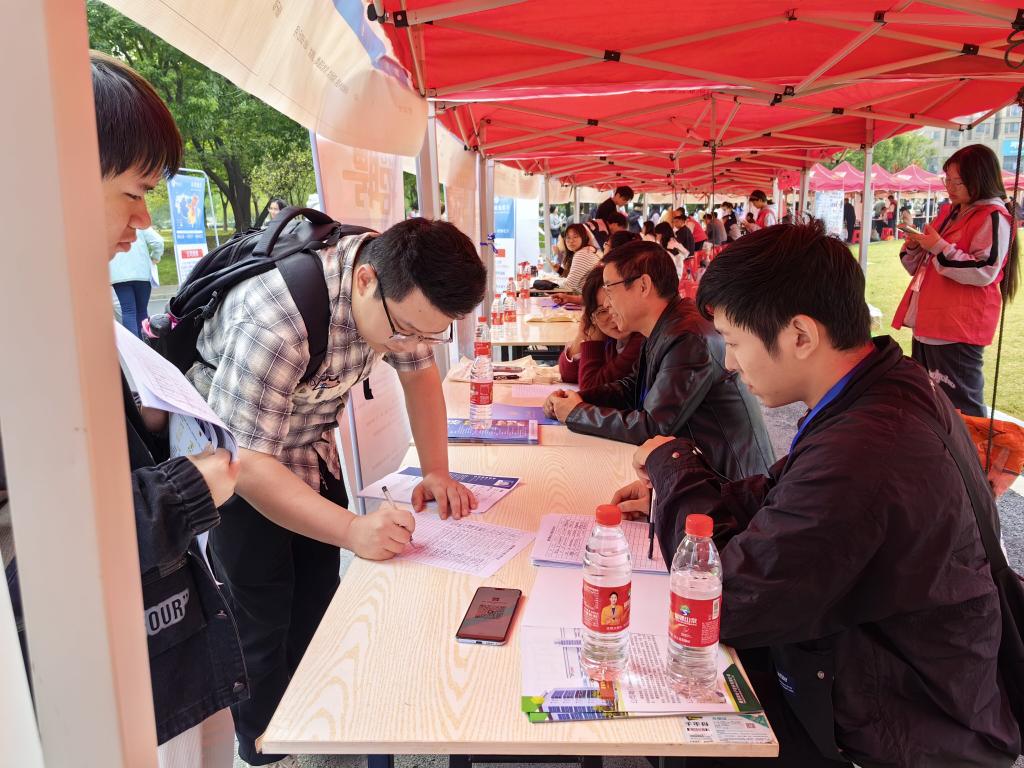 招聘会现场人头攒动,气氛热烈。知名上市公司展位前排起长队,同学们认真询问岗位设置、招聘条件、应聘流程、工作内容及薪资待遇等信息,并在现场进行简历投递。
