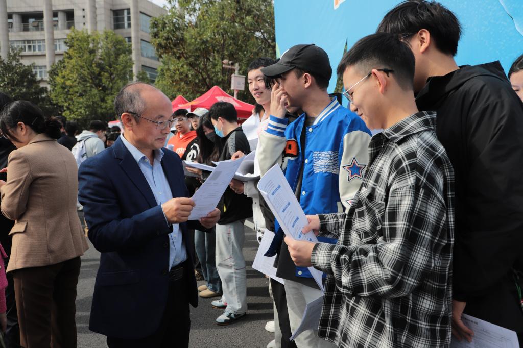 招聘会上,校领导深入招聘会现场和企业开展交流,与学生进行亲切地交谈,鼓励毕业生把握机会,尽早落实工作。