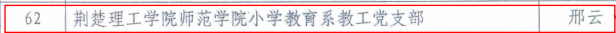 师范学院小学教育系党支部是湖北省高校“双带头人”教师党支部书记工作室培育创建单位,党支部书记邢云是省级一流专业负责人、校级教学团队建设先进个人、校级优秀党务工作者。该支部坚持以习近平新时代中国特色社会主义思想为指导,以服务地方教育尤其是乡村教育事业发展为出发点,在师资培训、对口帮扶、基础教育调研、乡村学校发展、教联体建设、支教服务等领域取得了卓越成绩。支部积极参与和承办国家级、省级教师培训项目12项,为基础教育培训师资达1600余人次。承办对口教育帮扶项目(咸丰县小学语文骨干教师培训),指导基础教育学校成功申报省、市级科研项目,多次为地方学校举办心理健康教育讲座。近年来,支部成员主动到附属学校挂职科研副校长、承担小学教学工作、参与乡村学校发展和荆门市教联体发展调研活动,先后获批校地横向项目12项,争取资金160余万元。