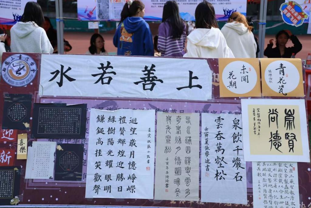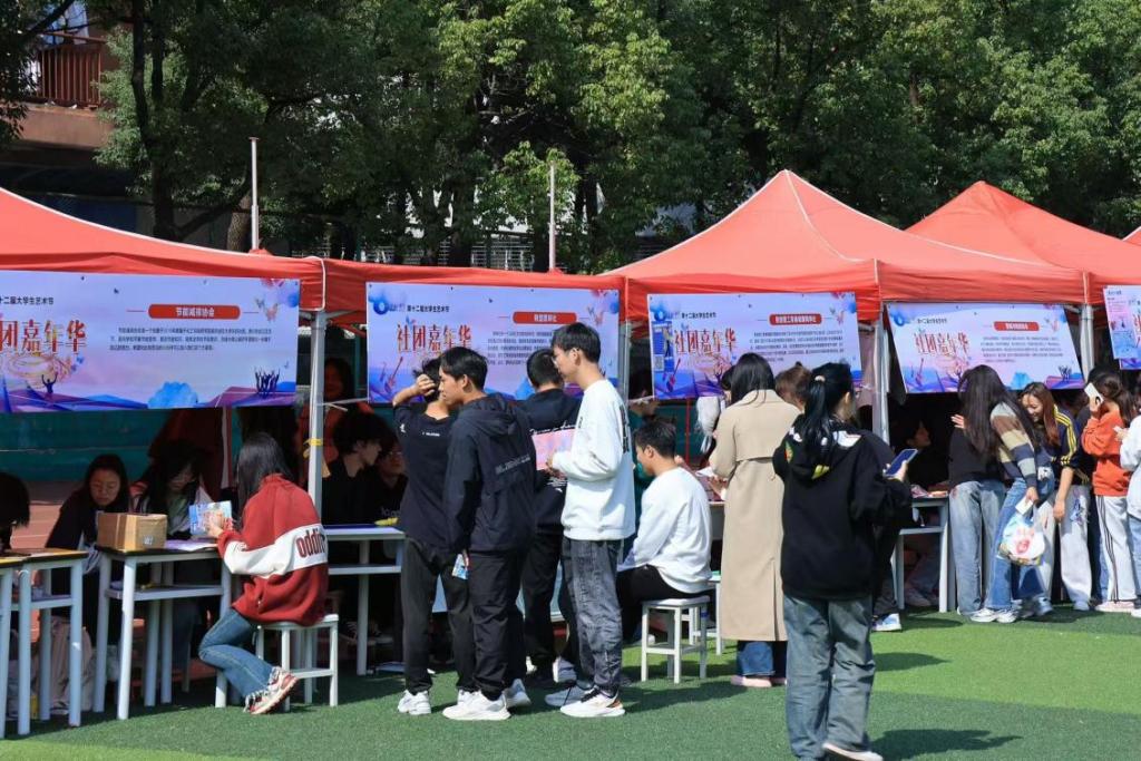 社团招新活动现场人潮涌动,热闹非凡。各社团结合自身特点,以宣传展板、优秀作品展示、文艺演出、现场体验等形式宣传社团文化。