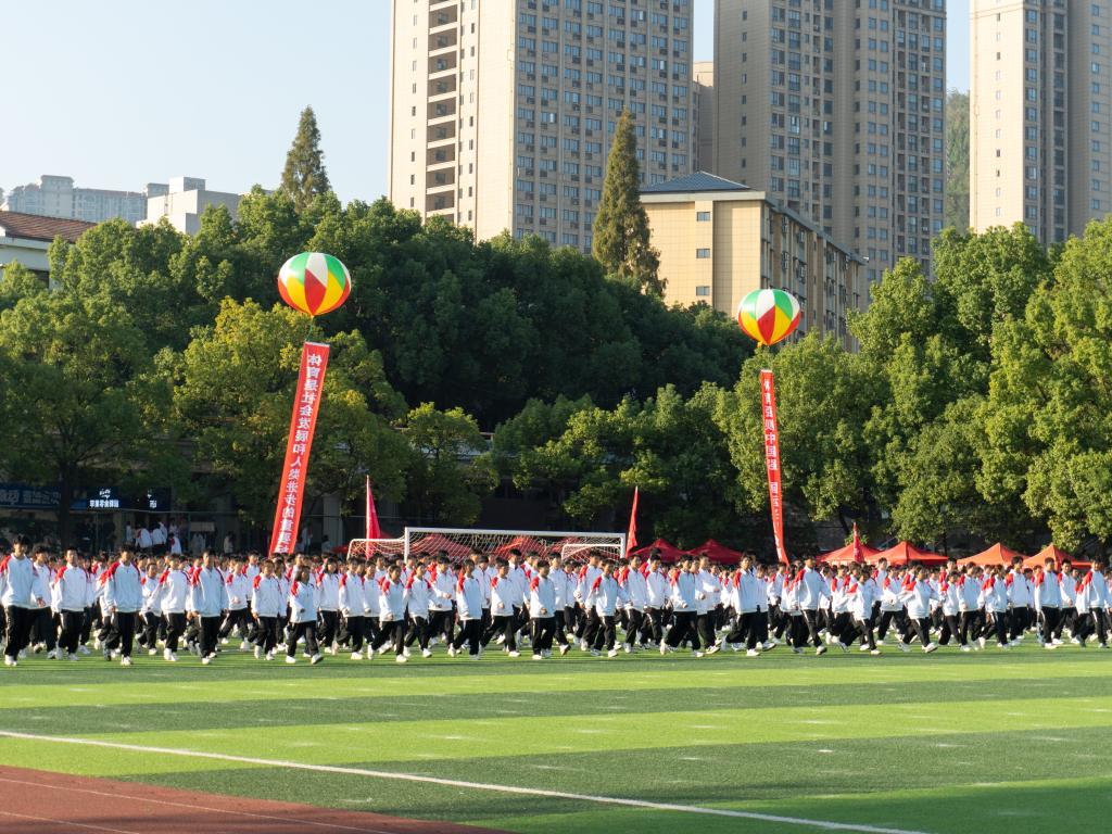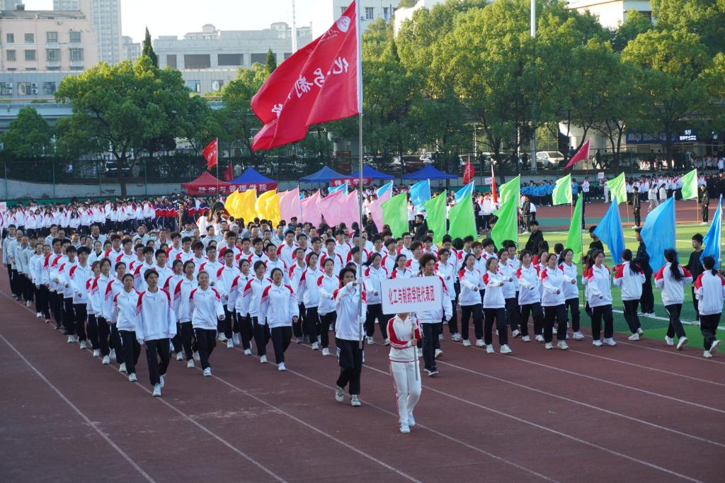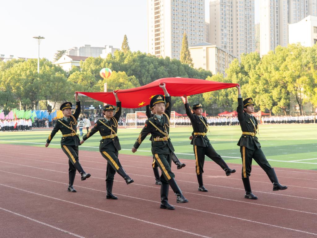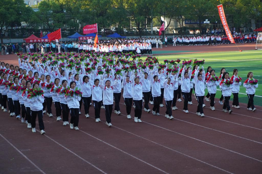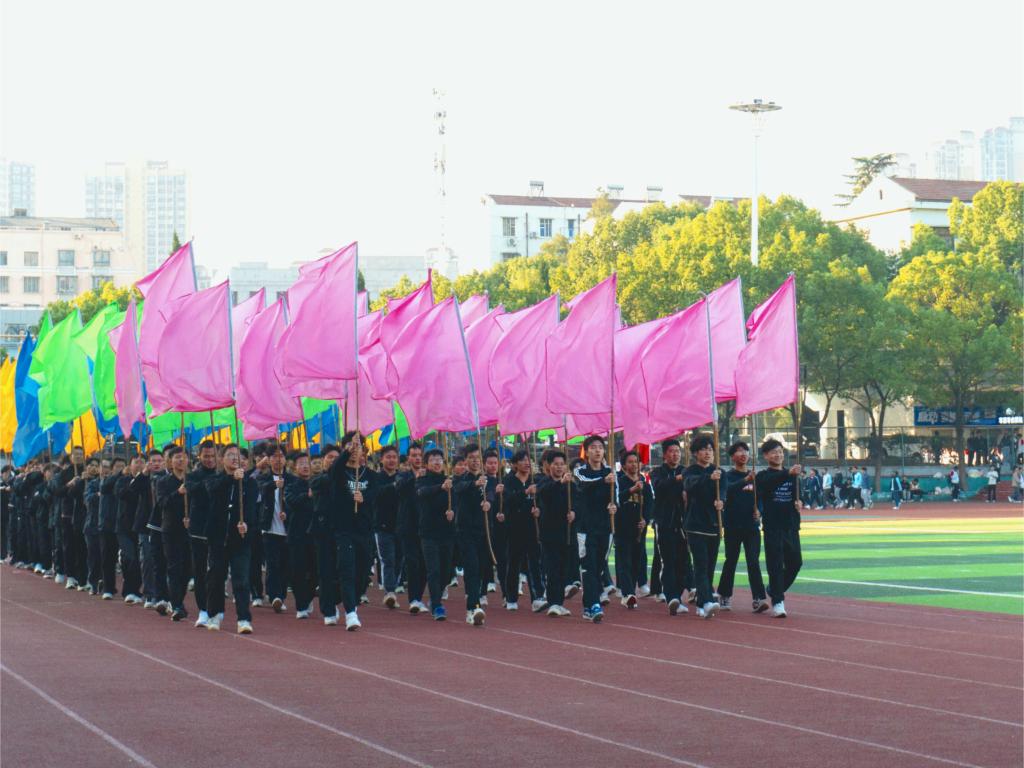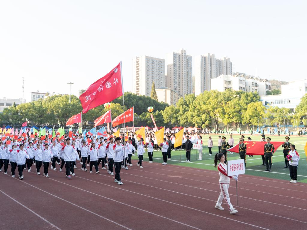 伴随着庄严的国歌声,国旗护卫队迈着铿锵有力的步伐,护送着鲜艳的五星红旗,走在队伍的最前列。彩旗方阵、鲜花队和裁判队紧随其后,飘扬的彩旗和绽放的鲜花在阳光下熠熠生辉。15个运动员方阵步伐整齐、精神抖擞,喊着掷地有声的口号依次通过主席台。他们铿锵有力的步伐和热情洋溢的笑容,展现了新时代青少年的朝气与风貌。