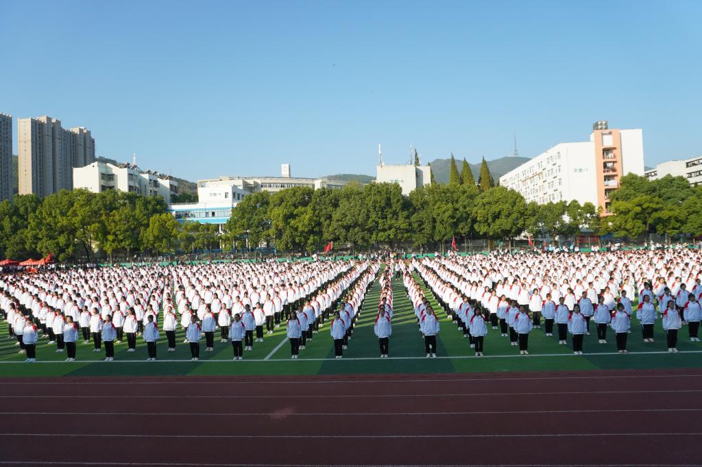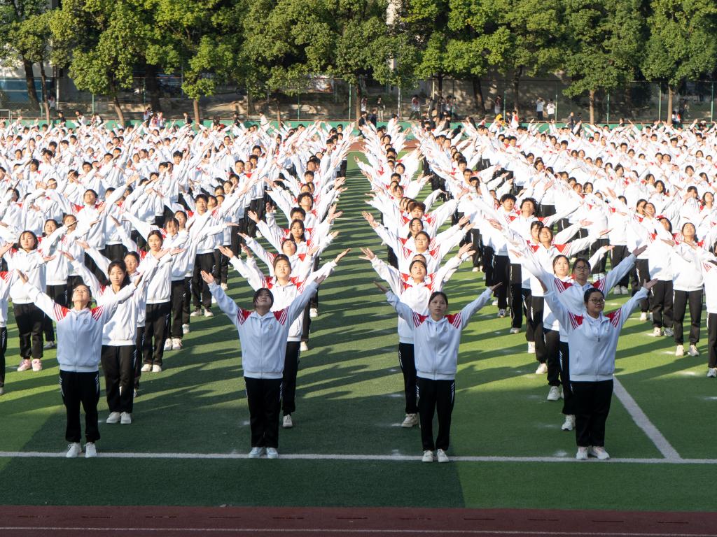 在开幕式表演中,来自8个不同的学院1600余名同学带来精彩的广播体操表演。同学们动作整齐划一,他们昂首挺胸,伸臂、扩胸、转体、踢腿、弯腰,动作娴熟,张弛有度,充盈着刚健之美,飞扬着动人的神采。他们的青春活力与专注的态度完美融合,仿佛让人看到了集体的力量在每个人的心中涌动。
