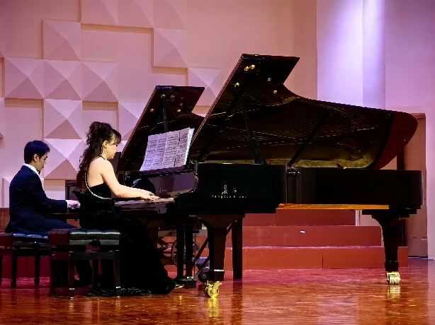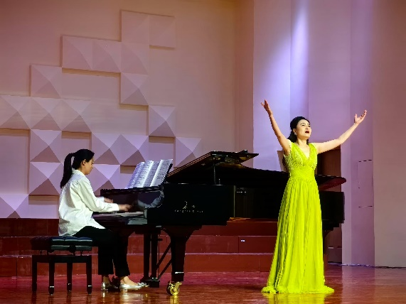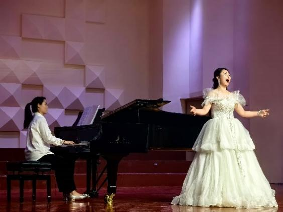 紧接着,李瑗珊用深情的嗓音演绎了《我爱这土地》,满含着对祖国大地的赤诚热爱,钢琴伴奏陈瑶馨的细腻配合,让这份情感更加深沉动人。杨阳演唱的《不幸的人生》婉转凄美,陈瑶馨的钢琴伴奏如潺潺流水,烘托着演唱者的深情倾诉,令观众沉浸其中。钢琴独奏节目《钟》同样精彩纷呈。朱梓屹指尖灵动,高难度的技巧被他驾驭得炉火纯青,清脆的音符仿佛钟声回荡在会场。唐巧兰演奏的《爱之梦》,则将浪漫主义的情感展现得淋漓尽致,每一次触键都如同在诉说着爱的故事。陈瑶馨演奏的《a小调奏鸣曲》,以其沉稳而富有表现力的演奏,展现了古典音乐的深邃内涵。