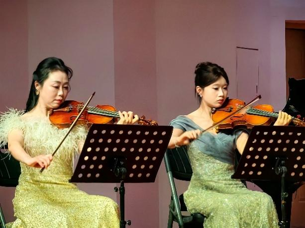 男女声二重唱《帕帕杰诺二重唱》,李艾玲和吴欣哲的默契配合,将莫扎特歌剧《魔笛》中的经典片段演绎得活泼灵动。胡然的男声独唱《我的祖国妈妈》,唱出了游子对祖国母亲的深深眷恋。乔凌燕演唱的威尔第歌剧选段《多谢,好友们》,展现了其扎实的声乐功底和对作品的深刻理解,为观众带来了一场高雅的艺术享受。钢琴协奏曲《黄河钢琴协奏曲》第一乐章《黄河船夫曲》,赵静的钢琴演奏与李懿的协奏配合默契,黄河船夫们与惊涛骇浪搏斗的画面仿佛就在眼前,展现出中华民族不屈不挠的精神风貌。弦乐四重奏《匈牙利舞曲第五号》欢快奏响,张琼等四人默契配合,小提琴和大提琴的声音相互交织。楚韵合唱团的混声合唱《大江东去》,在刘霄的指挥下,唱出了历史的沧桑与雄浑。