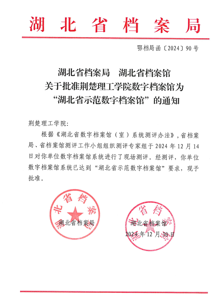 近日,湖北省档案局、档案馆印发通知,正式批准开云kaiyun官方网站档案馆为“湖北省示范数字档案馆”。