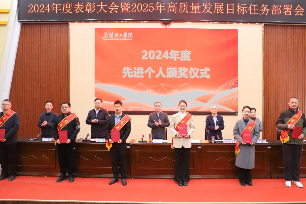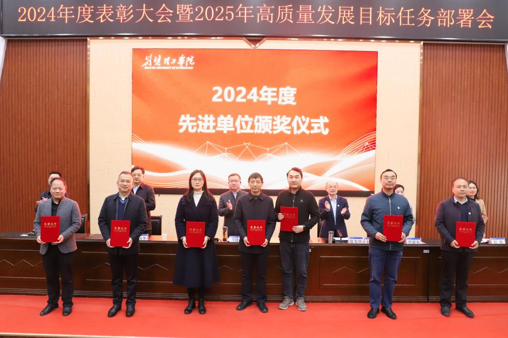 党委副书记、副校长刘风华宣读表彰文件,与会校领导为2024年度先进集体和先进个人颁发证书。