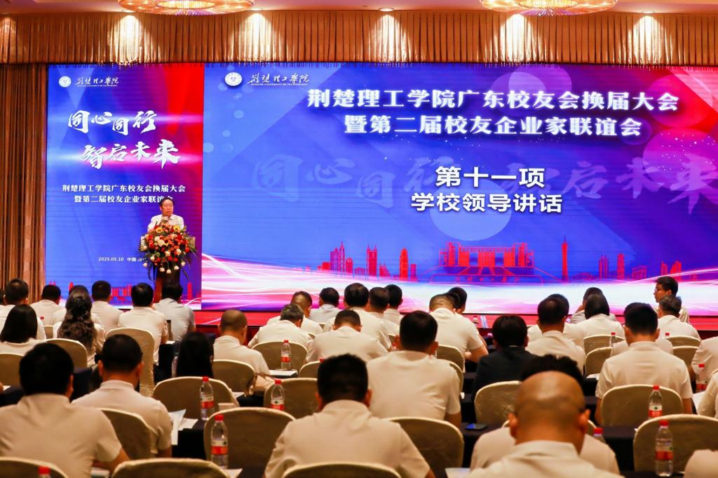 5月10日,开云kaiyun官方网站广东校友会换届大会暨第二届校友企业家联谊会在深圳举行。校友总会会长王学民,党委常委、纪委书记蒋永斌,荆门市政府驻深圳办事处主任兰刚,荆门市东宝区招商局局长刘亚苗,香港湖北社会组织总会副会长郑四龙,广东省湖北荆门商会秘书长曹文泽出席活动。新加坡、广东、陕西、广西、福建、北京、荆门、武汉等地校友代表近200人参加会议。