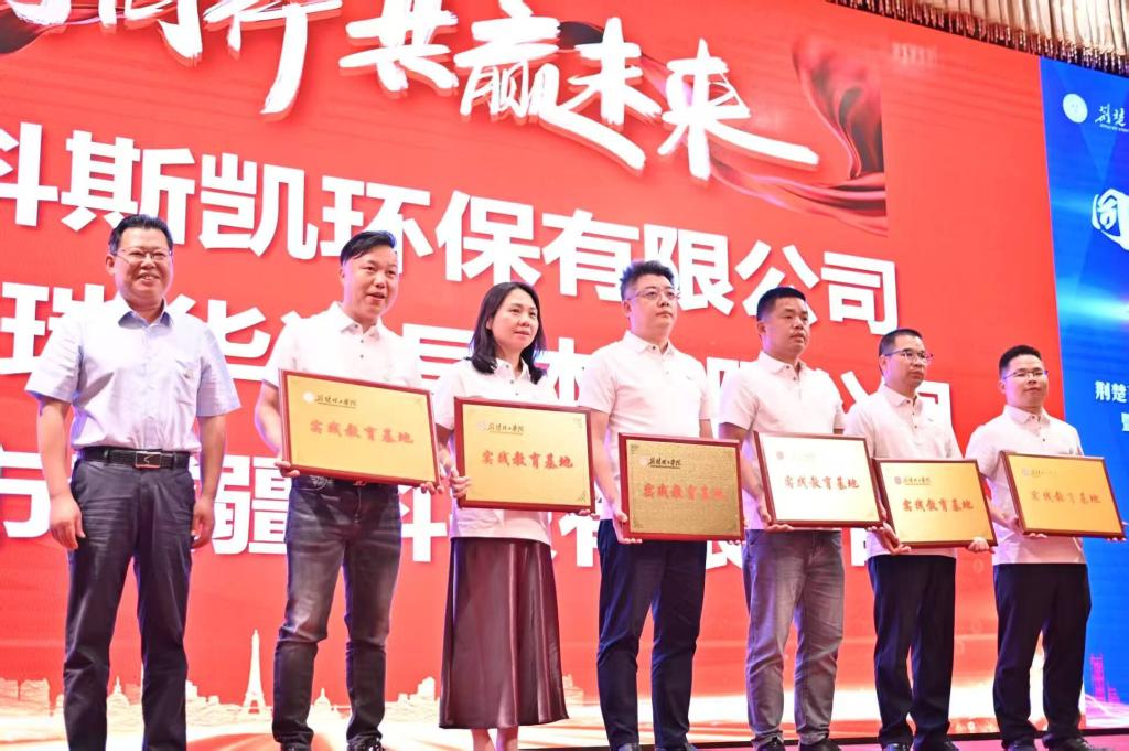 刘亚苗详细介绍了荆门市的投资环境、产业政策以及发展机遇,诚邀校友企业家们回乡投资兴业,为家乡的经济发展贡献力量。会上,还举行了图书捐赠和基地授牌仪式,广东校友会向母校捐赠价值码洋10万元,1715册图书,广东劳斯化工有限公司等12家校友企业与学校达成协议,共同建立教育实践基地及毕业生就业基地。