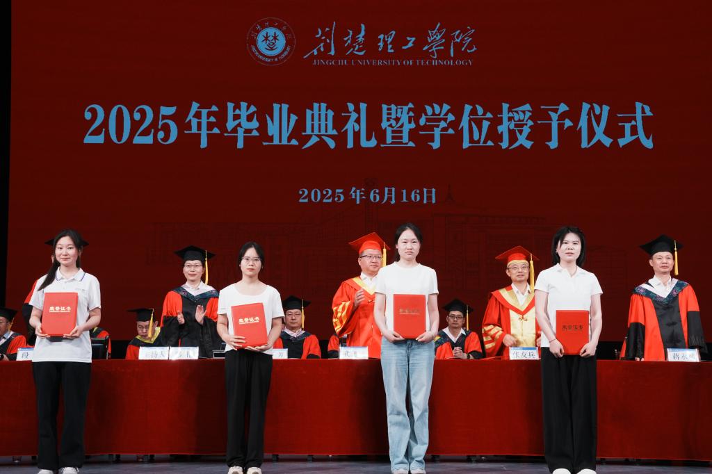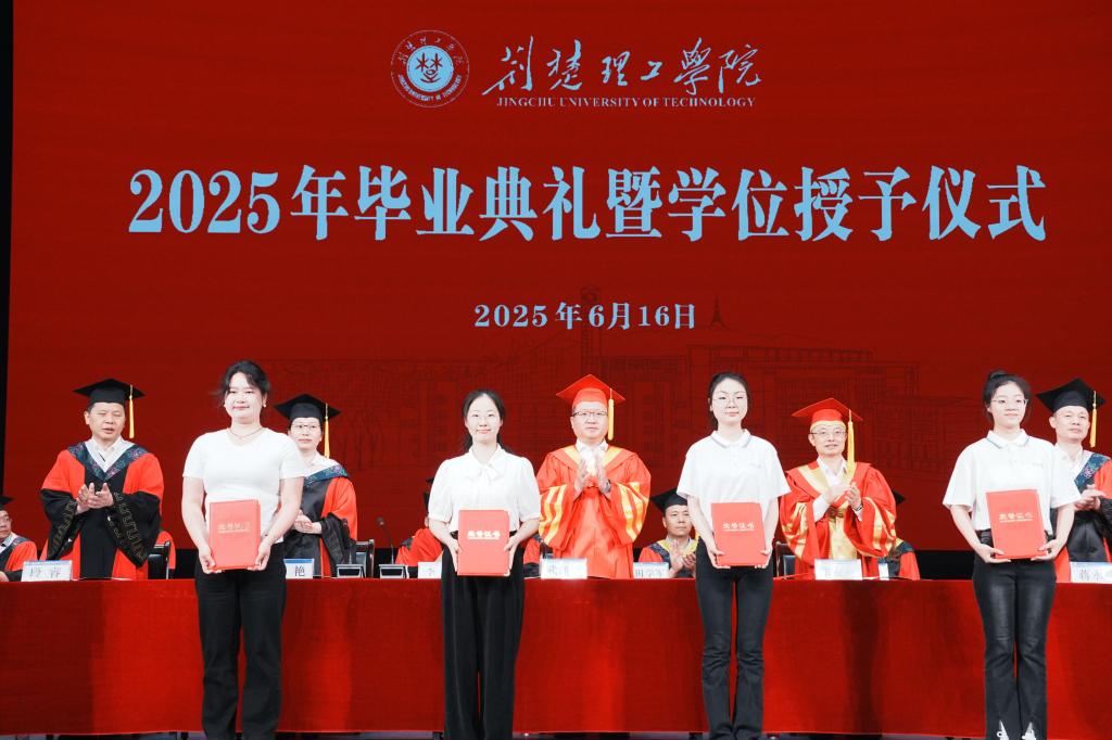 6月16日上午,开云官网2025届毕业典礼暨学位授予仪式在荆楚理工会堂举行。校领导、学位评定委员会委员、各学院及职能部门负责人、师生代表、校友代表、毕业生家长代表齐聚一堂,共同见证5223名毕业生开启人生新篇章。校党委副书记郑艳主持仪式。