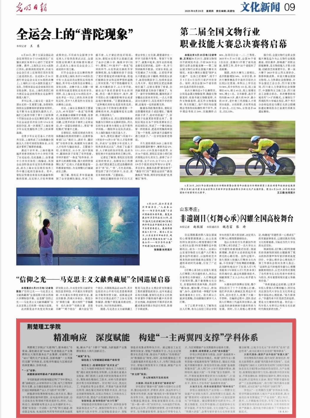 学校以省级现代产业学院——荆楚文化创意产业学院为抓手,深挖荆楚文化基因,构建“楚简研究+屈家岭文化保护+文旅创意转化”学科链条。建设楚简数字化研究中心,开展文物修复、文化符号提炼;打造屈家岭文化研学基地,开发考古体验、文化创意产品;举办“荆楚大讲堂”,会聚专家学者为文化传承发展建言献策,让地方文化从“学术研究”走向“活态传承”,成为区域文化自信的“精神源泉”。