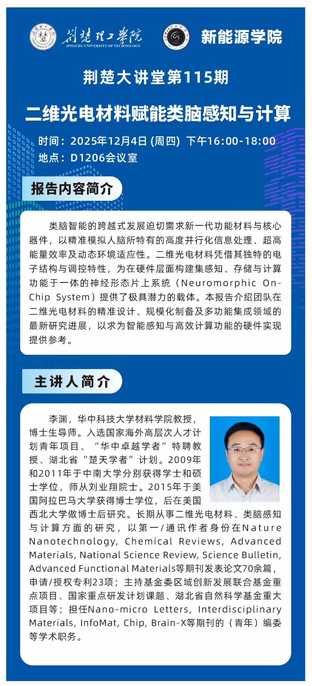 荆楚大讲堂第115期:二维光电材料赋能类脑感知与计算