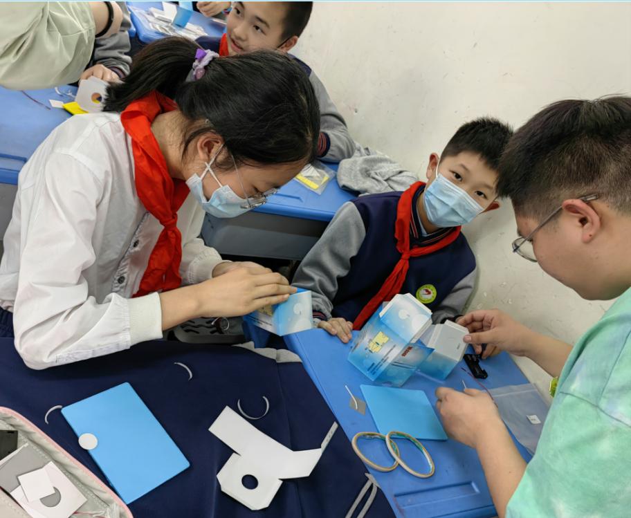 同时,科普团走进课堂,指导学生们做物理小实验,与同学们一起探索科学世界的奥秘。在科技小制作环节,指导老师向同学们介绍了“鲲龙”AG600M灭火飞机这一大国重器,讲述中国制造的飞速发展和巨大成就,并带领低年级同学动手制作“水上飞机”,高年级同学则挑战更有难度的幻灯机制作。“好看、好玩,并且能亲自动手制作作品,收获满满!”同学们纷纷表示。