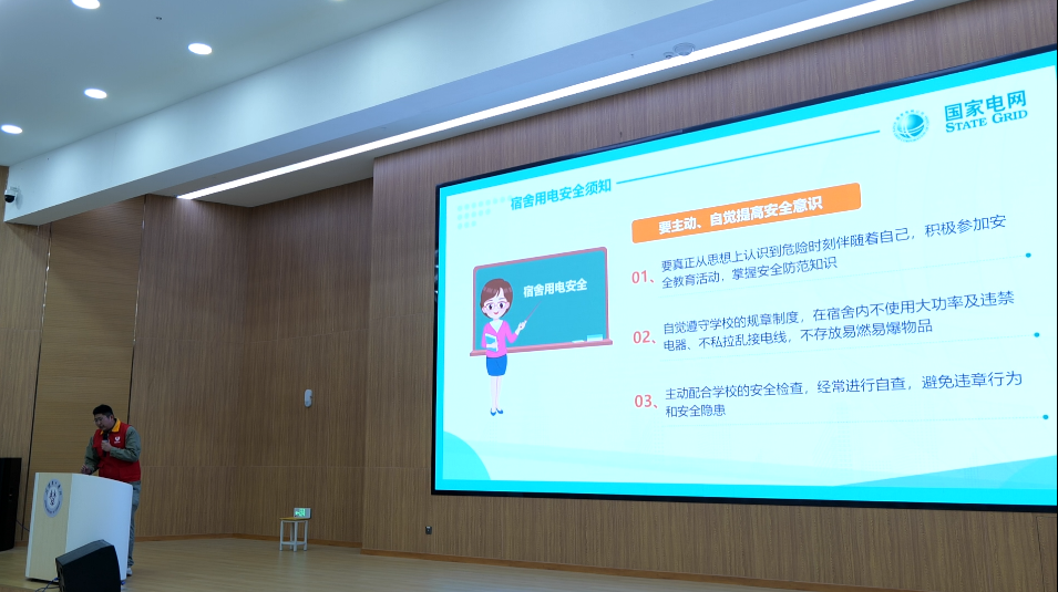 国网荆门供电公司东宝区供电中心工作人员通过播放大学生宿舍违规用电案例视频,对电器火灾的诱发原因进行分析,再次为同学们敲响安全用电的警钟。结合生活中的案例,从宿舍安全用电知识、宿舍外出用电注意事项、触电急救方法等方面科普用电安全以及各类安全隐患的规避及其应对。