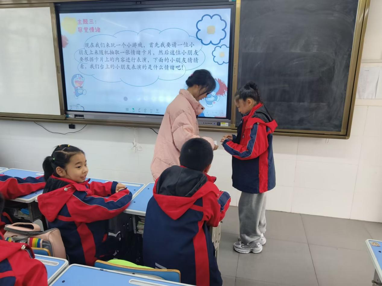 为引导孩子们思考如何成为自己情绪的主人。秦欣怡姐姐通过“大风吹”趣味小游戏,吸引孩子们积极参与,帮助他们快速进入状态。简单却富有挑战性的游戏不仅帮助孩子们放松心情,还在不知不觉中促使他们反思自己的情绪管理。通过轻松的互动,孩子们学会了接纳自己,理解自身的优缺点,同时也初步意识到情绪管理与自我认知的重要性。