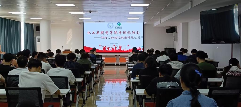 5月26日上午,化工与制药学院在化工实验楼B314学术报告厅成功举办湖北汇和瑞达能源有限公司专场招聘会。招聘会吸引了化工与制药学院、新能源学院、智能制造学院共110名毕业生参与,现场收取简历46份,初步达成就业意向24人。