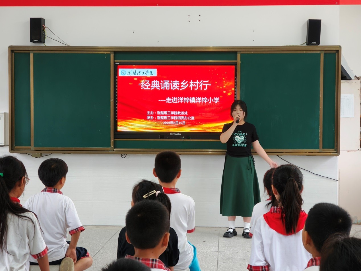 经典诵读润童心,文化薪火传荆楚。为传承中华经典文化,关爱乡村儿童成长,近日,教务处语委办公室组织师生赴钟祥市洋梓镇洋梓小学开展“经典诵读乡村行”活动,为孩子们带来一场沉浸式的经典诵读盛宴。