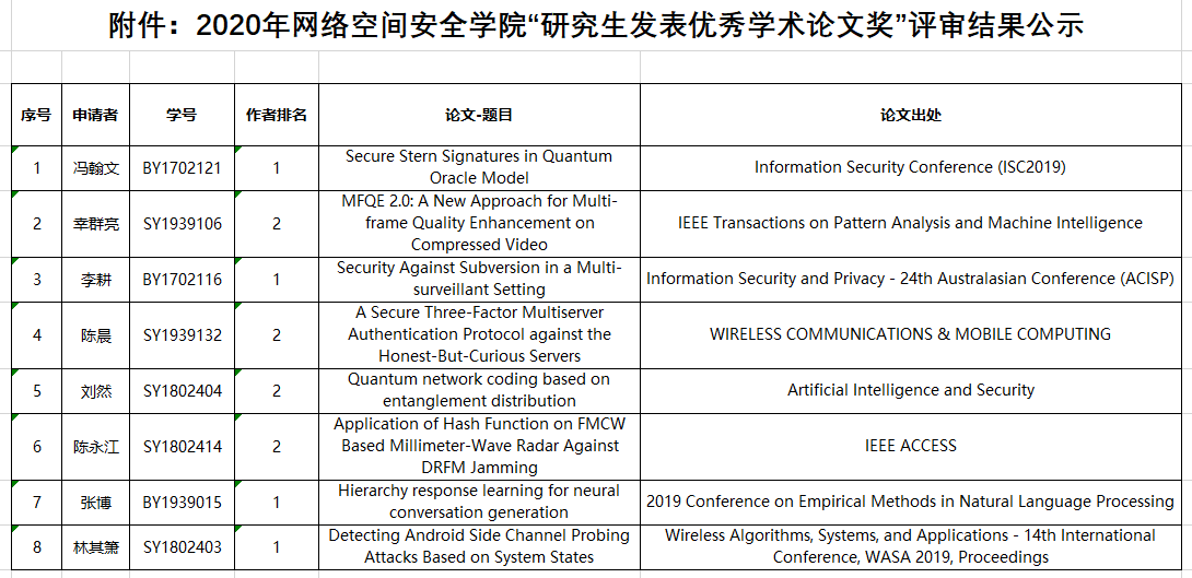 名单详见附件:2020年澳门正规电子游戏平台“研究生发表优秀学术论文奖”评审结果公示,