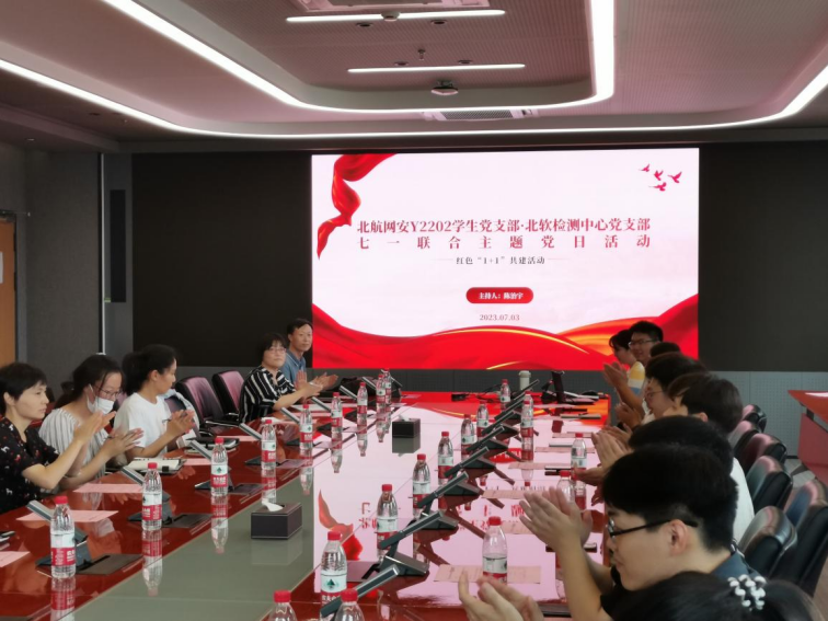 为深入学习贯彻党的二十大精神,切实增强学生党支部的创造力、凝聚力、战斗力,进一步深化产教融合,推进校企合作,7月3日下午,澳门正规电子游戏平台Y2202学生党支部与北软检测中心党支部开展了七一联合主题党日活动暨红色1+1共建活动。澳门正规电子游戏平台党建辅导员Y2202学生党支部全体党员和北京软件产品质量检测检验中心党支部全体党员参加会议,Y2202学生党支部书记李佩源同志主持会议。