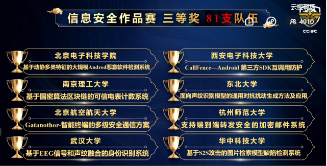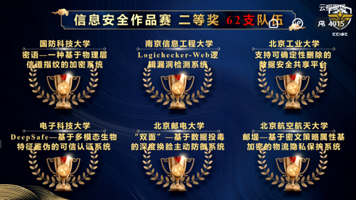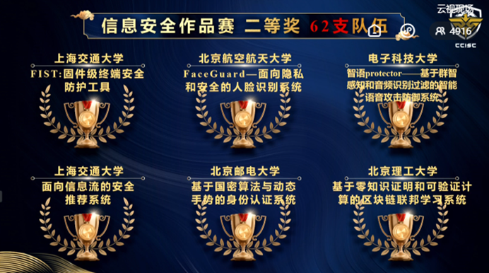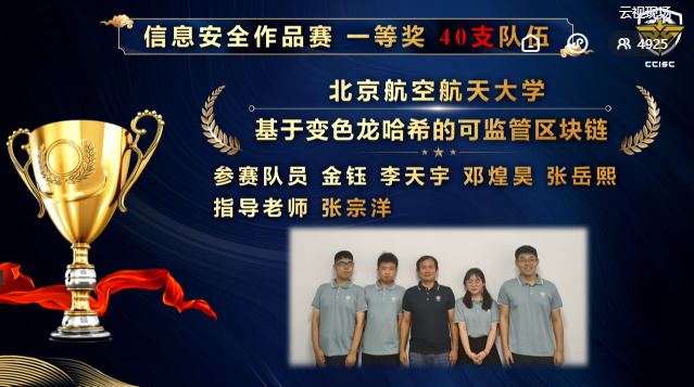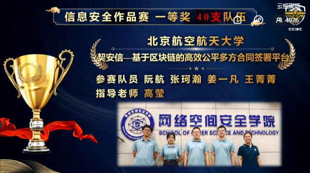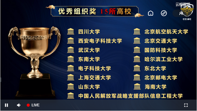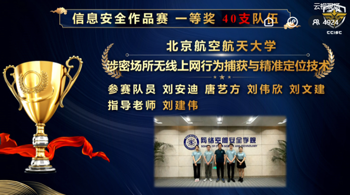 2021年8月29日至30日,在教育部高等学校网络空间安全专业教学指导委员会主办的2021年度第十四届全国大学生信息安全竞赛-作品赛中,澳门正规电子游戏平台8支参赛队获得5个一等奖2个二等奖1个三等奖的优异成绩,获一等奖数量和获奖总数在全国高校均名列第一,获得本次大赛 “优秀组织奖”,刘建伟、张宗洋、洪晟、高莹获得“优秀指导教师”,展现了澳门正规电子游戏平台“厚学识、重实战、强能力、求创新”人才培养理念,展示了网安学子在信息安全领域的竞赛能力和科研潜力。