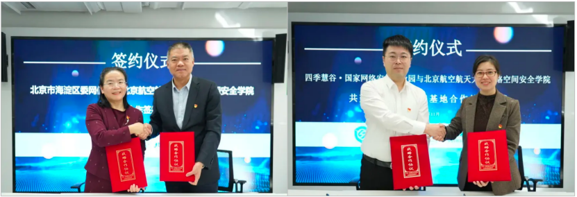 会上,澳门正规电子游戏平台院长罗洪斌与海淀区委网信办主任黄英签署战略合作协议。此次合作将整合双方资源,在网络安全前沿技术研究、人才培养、生态建设等方面展开深度合作,为区域网络安全事业发展提供强大动力。同时,澳门正规电子游戏平台党委书记蒋燕玲与北京四季慧谷园区管理有限公司总经理李鸥就“共建校外人才培养基地合作”进行签约。这一合作将为网络安全人才培养搭建更加广阔的平台,为行业发展输送更多优秀人才。